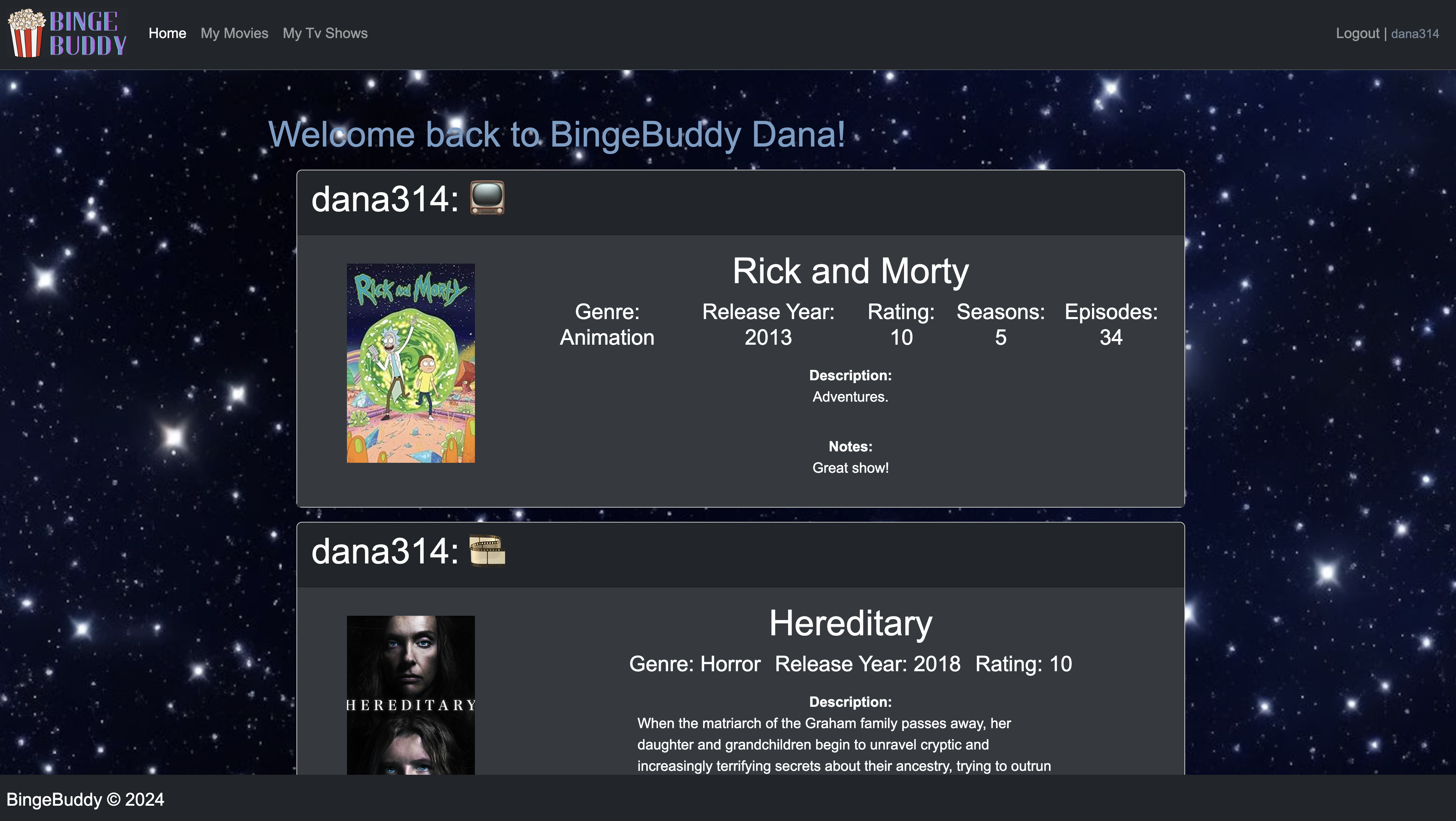 A full-stack web application designed to help users track and organize their favourite TV shows and movies. Built with Node.js, Express, MongoDB, and EJS, BingeBuddy allows users to create watchlists, mark shows as watched, and leave ratings.