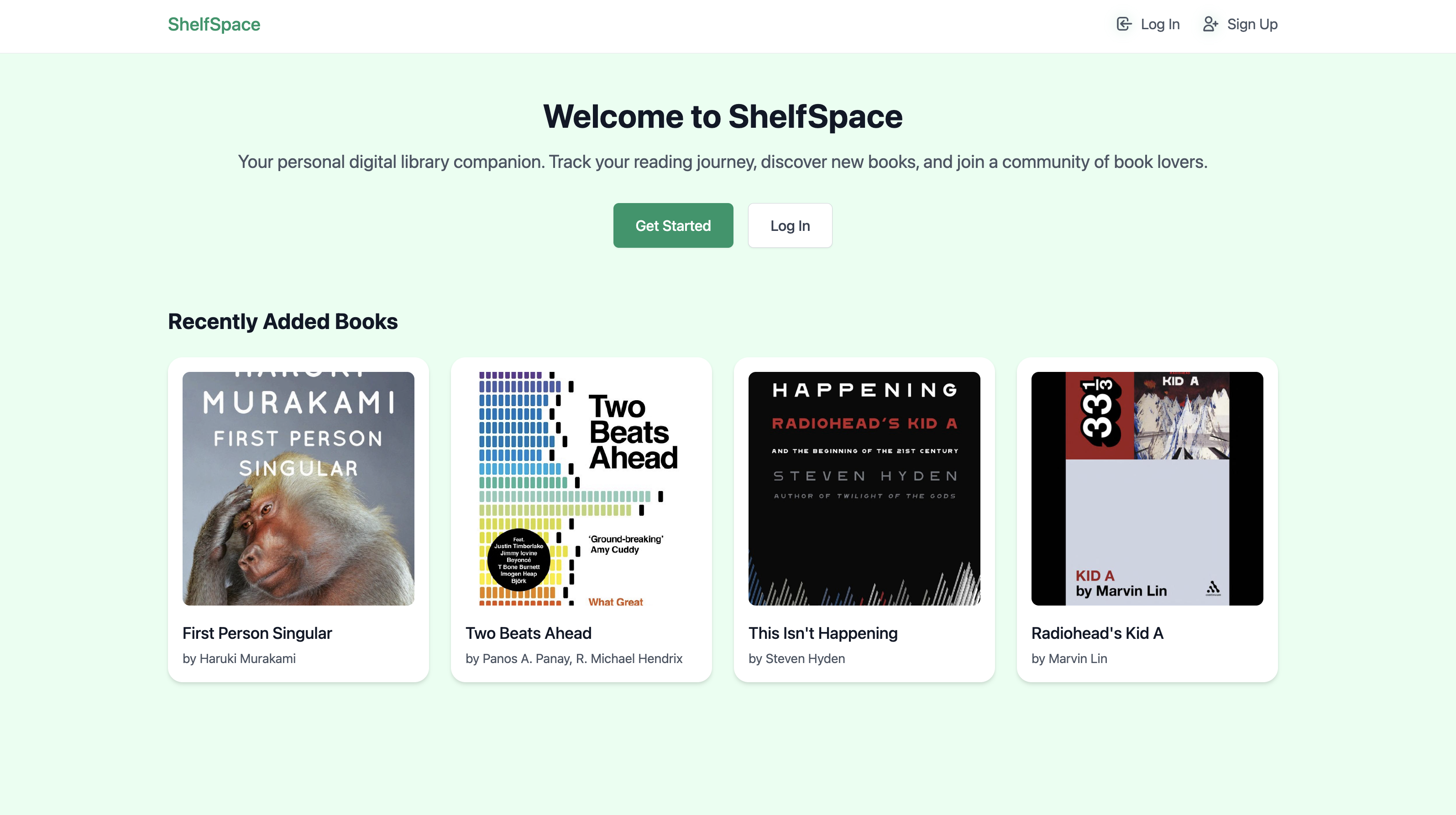 A collaborative book tracker app designed to help users organize their reading lists, rate books, and discover new reads. Built with Python3 and Django, ShelfSpace allows users to create personal libraries, track reading progress, and view recent books added by other users on their homepage.